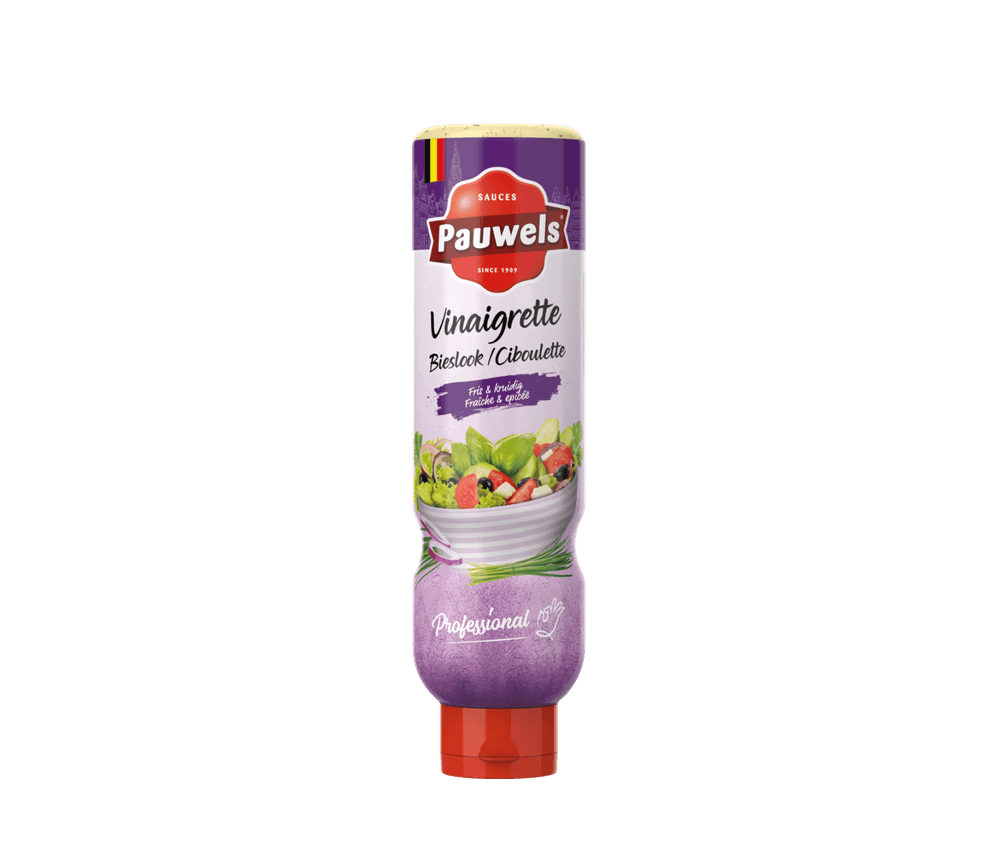 De bieslook vinaigrette van Pauwels is lekker fris en licht zurig met een wonderlijk geslaagde mosterd-ondertoon. Ideaal voor al je knapperige salades of zelfs een tomaat-garnaal. Een hemelse dressing op basis van onder andere witte wijnazijn en bovendien kant en klaar geleverd in een handige doseerbus met handvat.